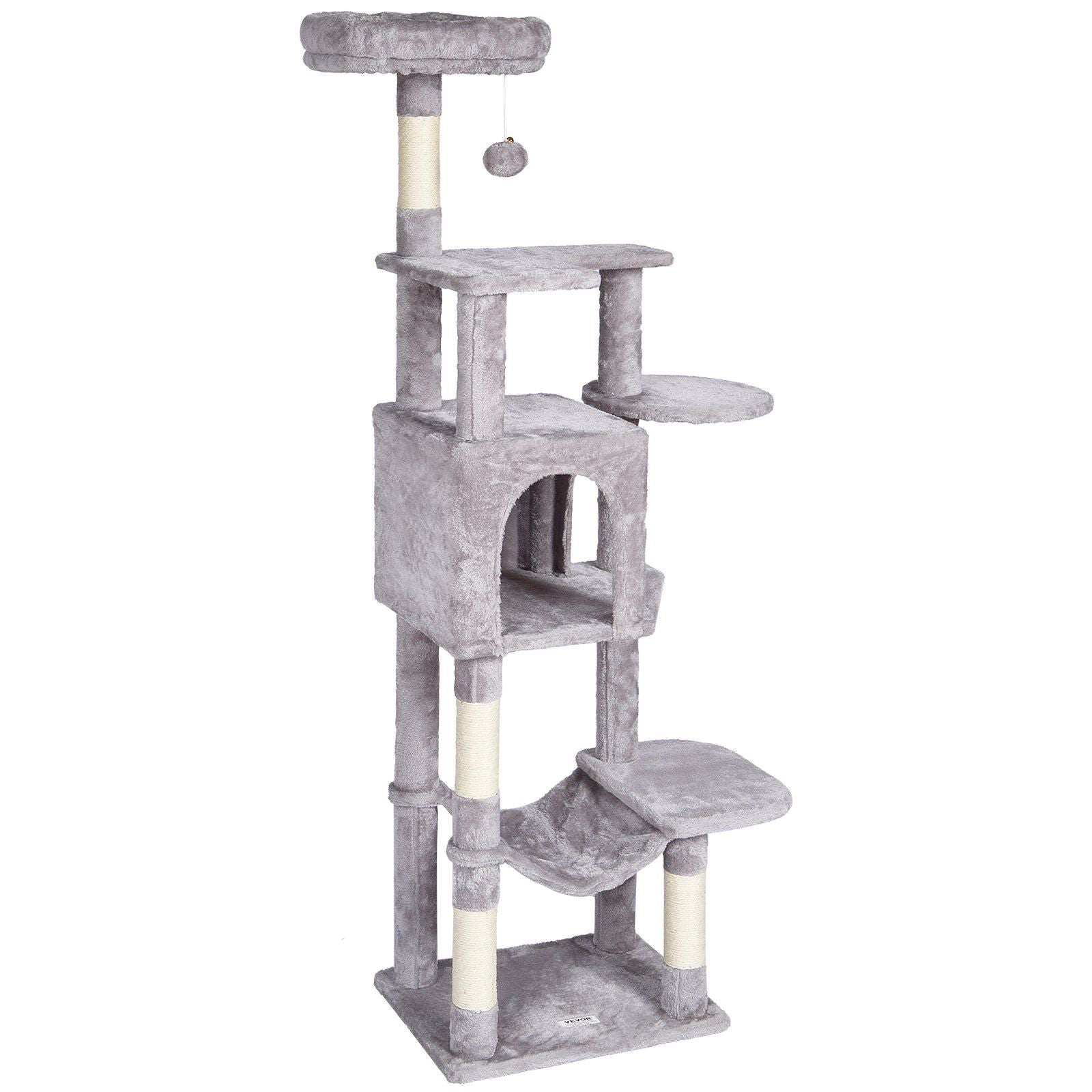 VEVOR Cat Tree 60.6" Cat Tower with Cat Condo Sisal Scratching Post Light Grey