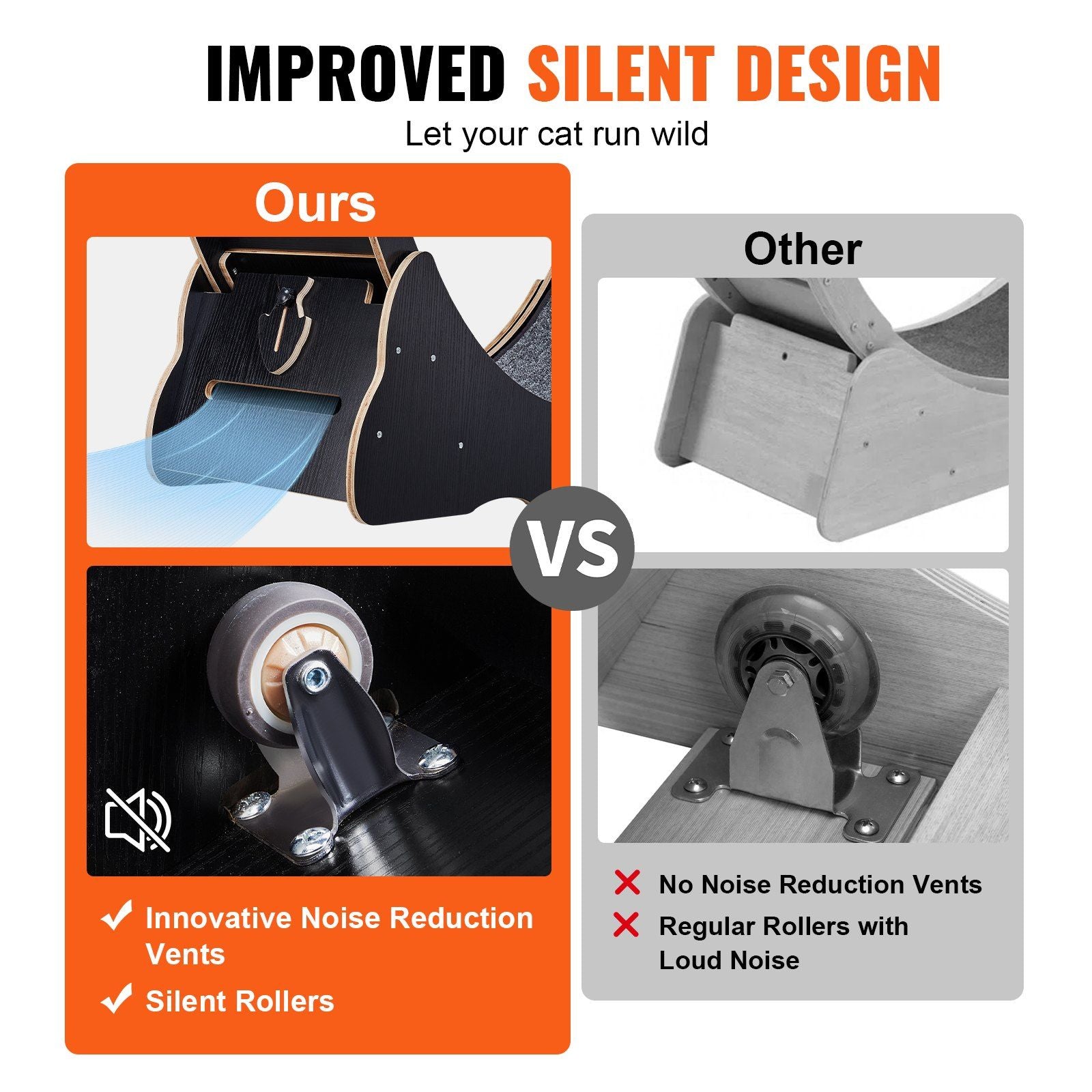 2.Tranquil and Noise Reduction: Equipped with an integrated silent wheel and a bottom noise-reduction, this double noise reduction design creates a quiet and pleasant exercising environment for your pets, while also improving the indoor atmosphere.