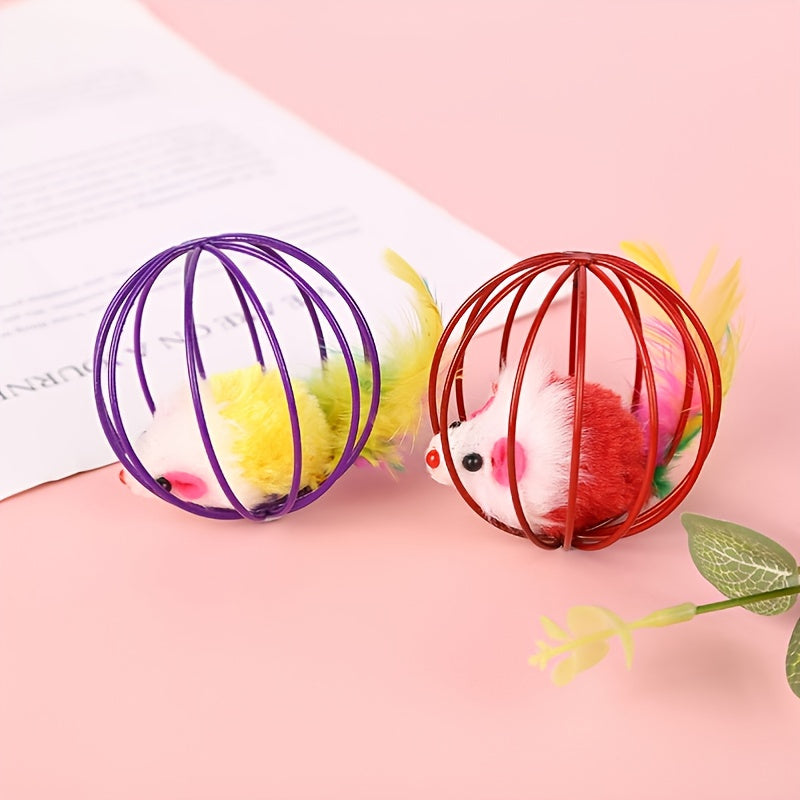 Cat Teasing Play Toy With Rat 1pc; Cat Interactive Toys; pack of 2; Diameter: 2.4in